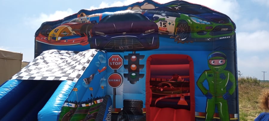 Bring speed and smiles to your event with the Fast Racing Cars Bouncy castle with slide 18x12. This themed inflatable combines a spacious bounce area with a super speedy slide. Perfect for birthday parties, school fetes, and corporate family days. Low setup time. High fun factor. Ideal for ages 3–12. 🎉